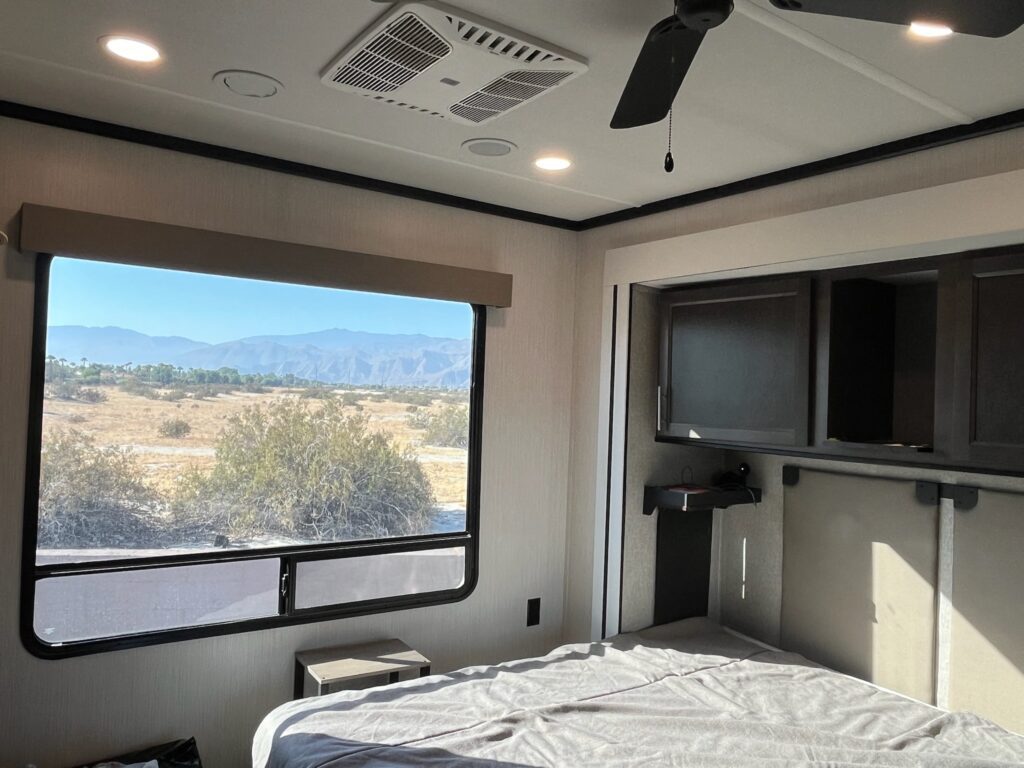Beautiful newer 2024 Forest River cottage available for rent in Desert Shadows RV Resort.